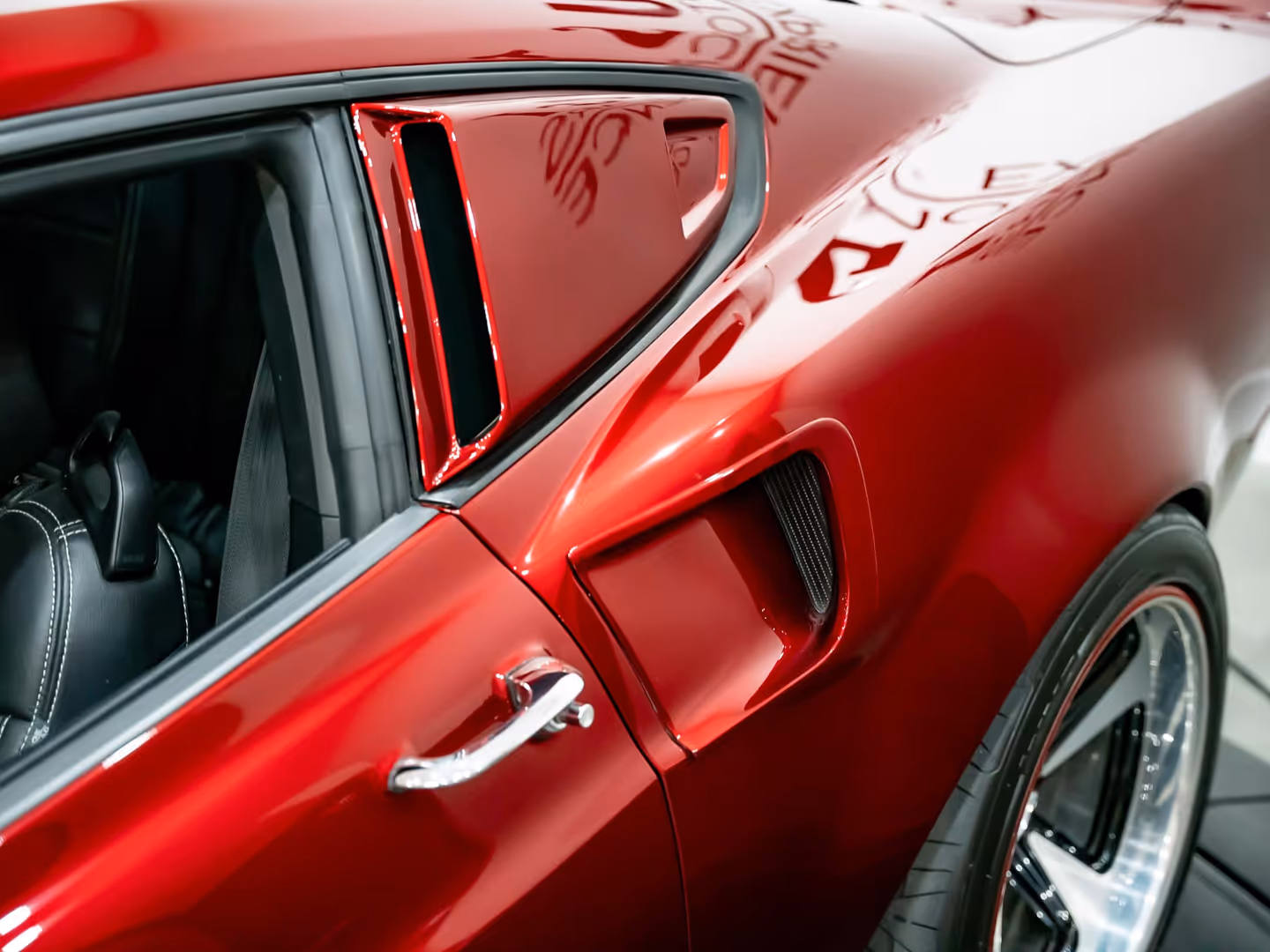 To complete the exterior, the car was painted in House of Kolor Apple Kandy, a jaw-dropping finish achieved with four meticulous coats of this vibrant, deep red paint. The result is a show-stopping, head-turning masterpiece that gleams like a work of art in the sunlight.