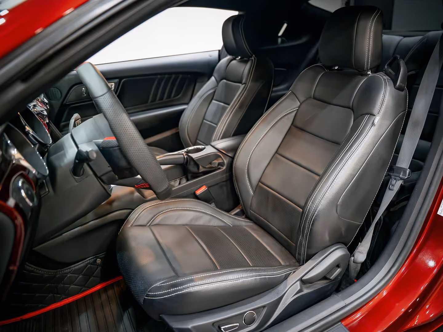 While the exterior may look like a 1969 Mustang, the interior is all modern luxury and technology. This car retains the comforts and conveniences of a 2015 Mustang, including:
