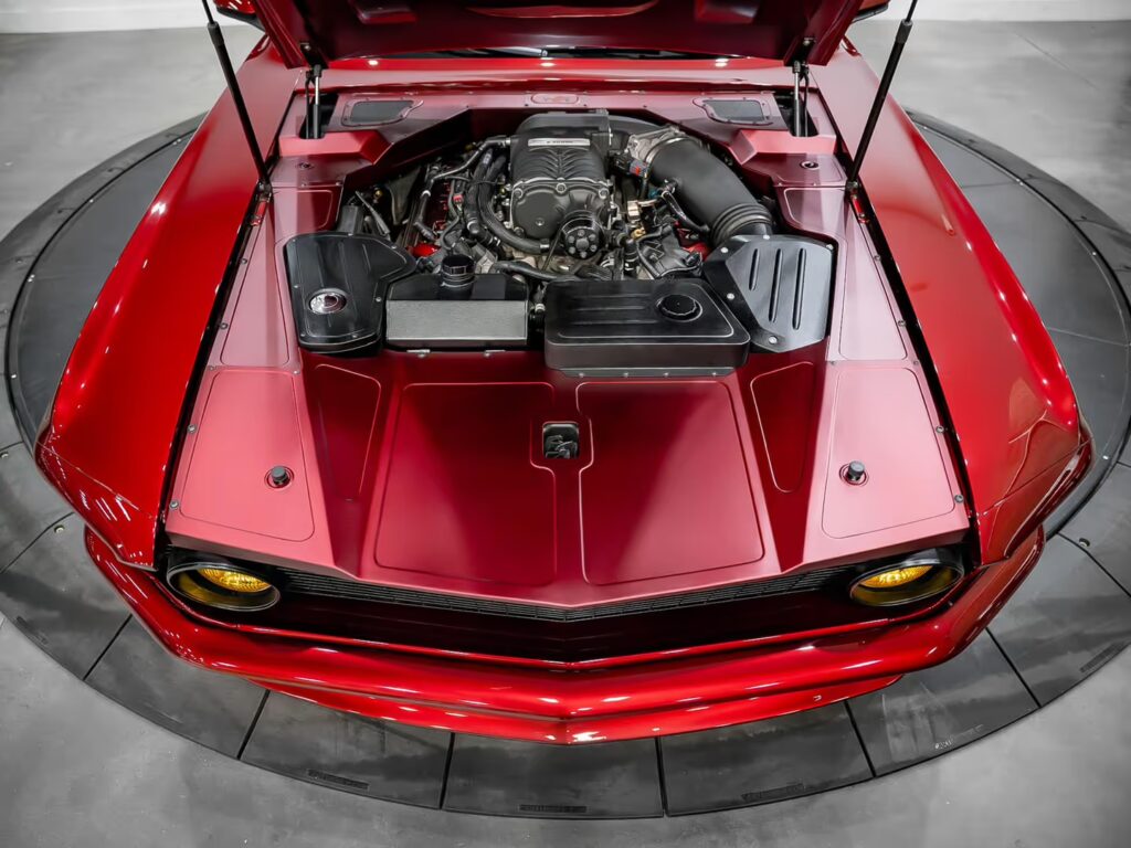 This custom-built Mustang is more than a car—it’s a statement. It’s a bridge between eras, combining the best of 1969’s muscle car heritage with the performance and reliability of modern engineering. The attention to detail, from the widened body to the gleaming Apple Kandy paint, showcases a level of craftsmanship rarely seen in the automotive world.