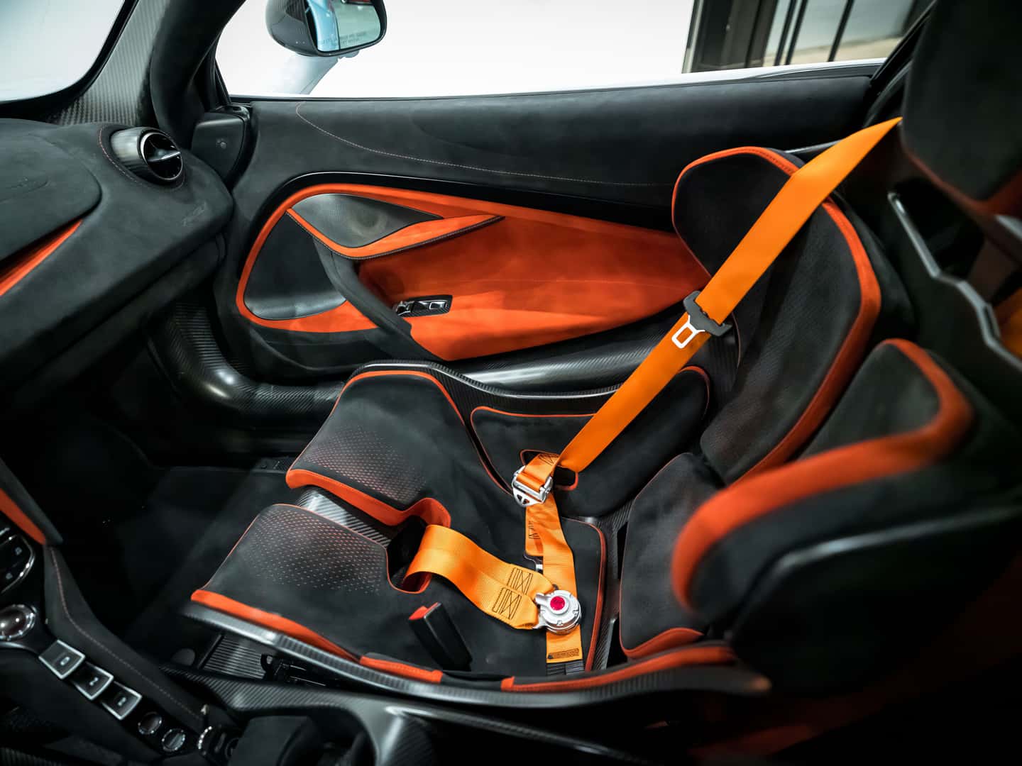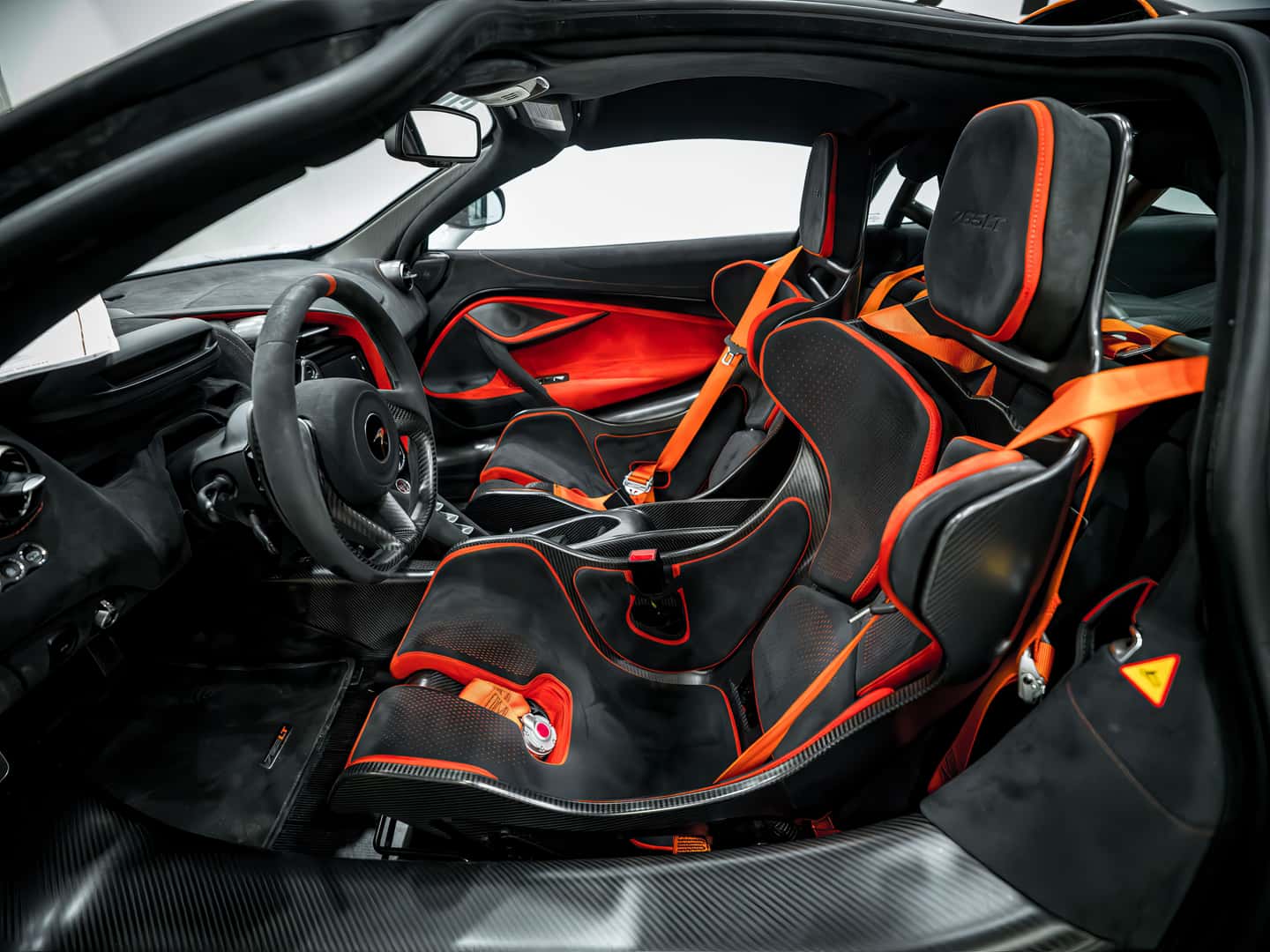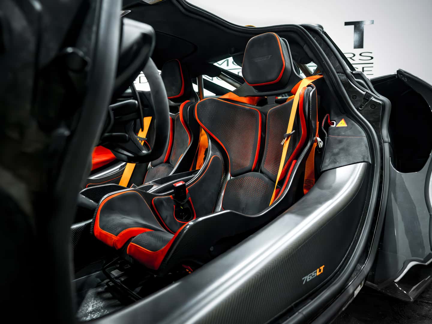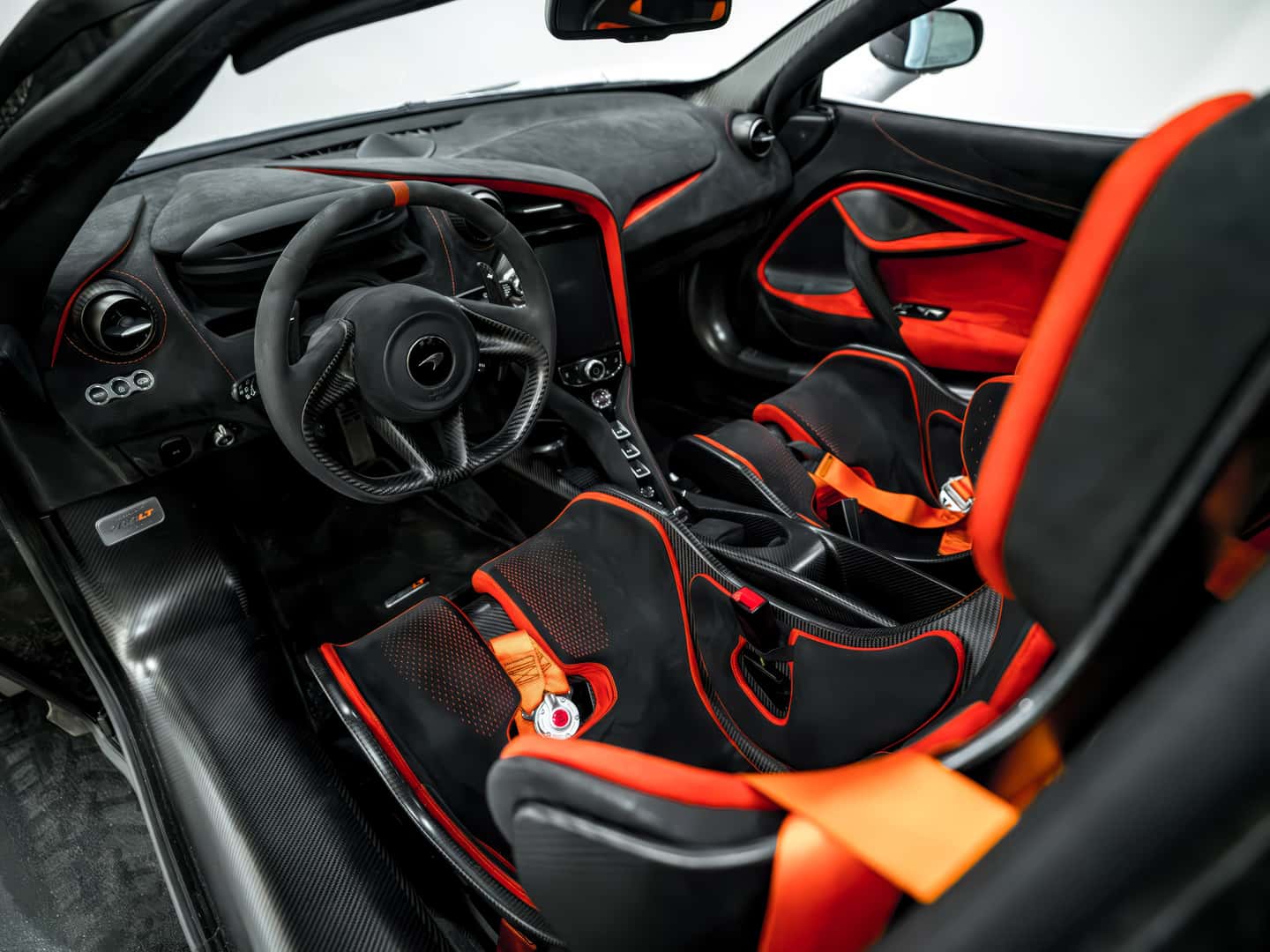 The cabin of the 765LT is a perfect blend of lightweight materials and high-performance design. Alcantara and carbon fiber dominate the space, reducing weight while enhancing the supercar experience. This particular spec features a striking Carbon Black and Burnt Orange interior, with McLaren’s signature bucket seats designed to provide both comfort and maximum support during spirited driving. Every detail, from the minimalist yet high-tech dashboard to the paddle shifters, is crafted for one purpose—driving at the absolute limit.